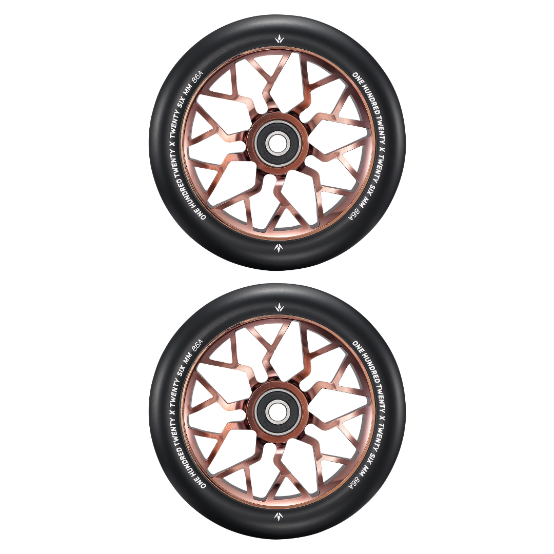With a 120mm diameter, they offer increased ground clearance to help reduce deck scraping, while the 24mm core paired with a 26mm wide urethane profile adds extra protection around the core and enhances longevity.