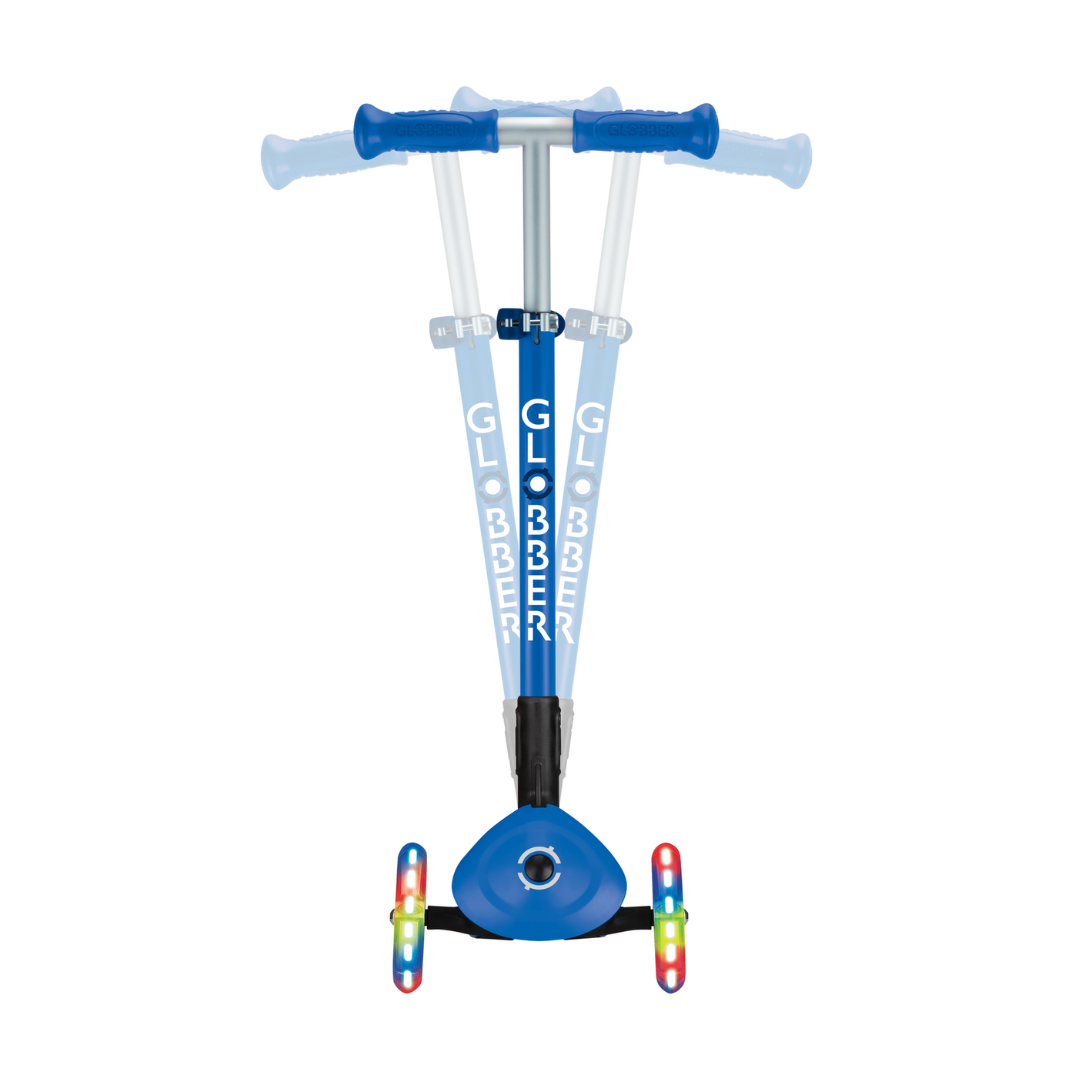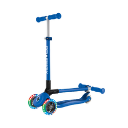 Globber PRIMO FOLDABLE LIGHTS 3-Wheel Foldable Kick Scooter With Light-Up Wheels For Kids Aged 3+, in Navy Blue