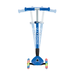 FOLDABLE 3-WHEEL KIDS SCOOTER- PRIMO FOLDABLE LIGHTS is a 3-wheel foldable scooter for kids, thanks to Globber's patented folding mechanism with a push button; folding a scooter is fast & easy! With just a push of a button, you can easily fold up the scooter to carry it in trolley mode and conveniently store it away after playtime!
