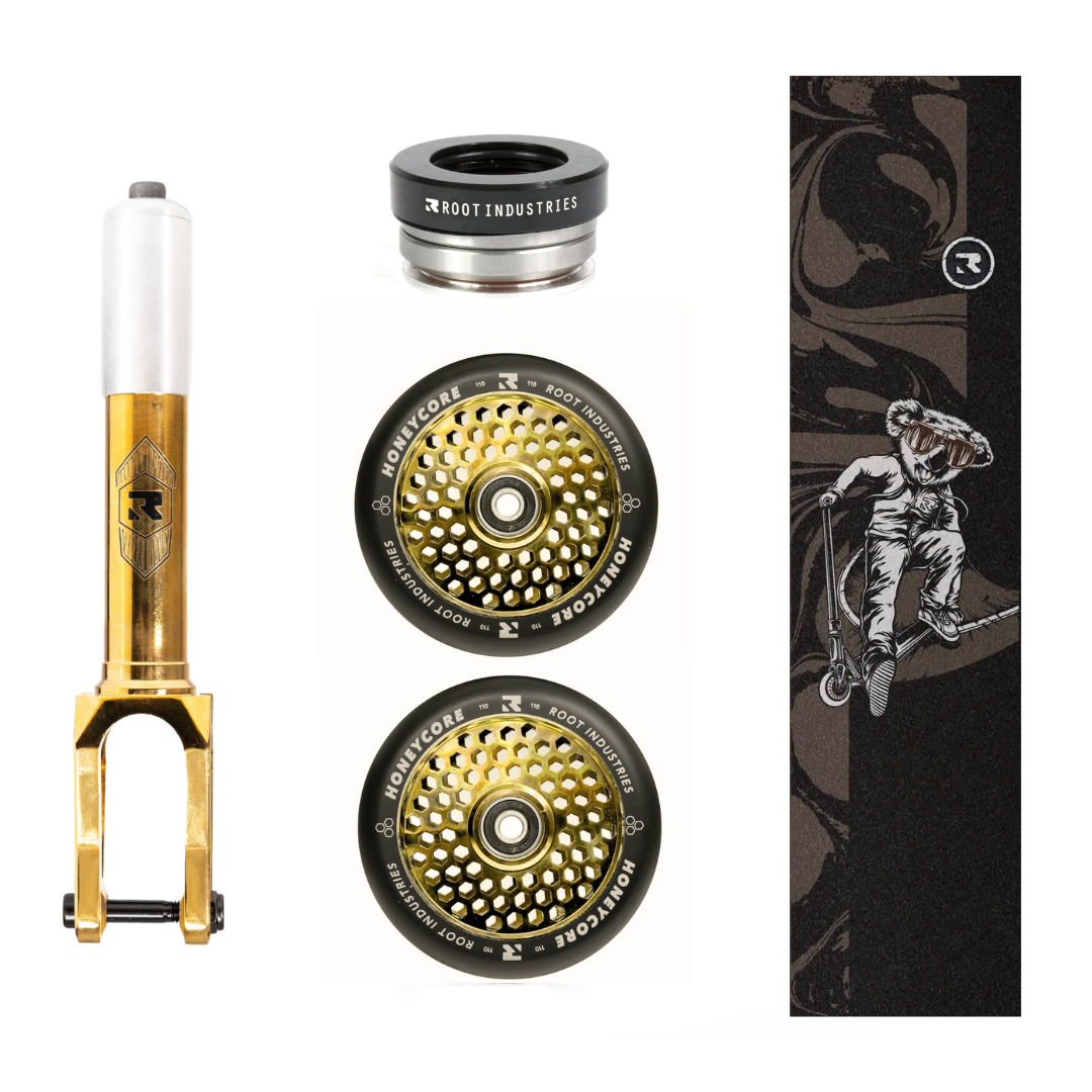 The Root Industries Invictus Wheel Pack delivers premium performance and style for riders who demand the best from their setup. Built for smooth speed, lightweight control, and unmatched durability, this pack includes everything you need to elevate your scooter game.