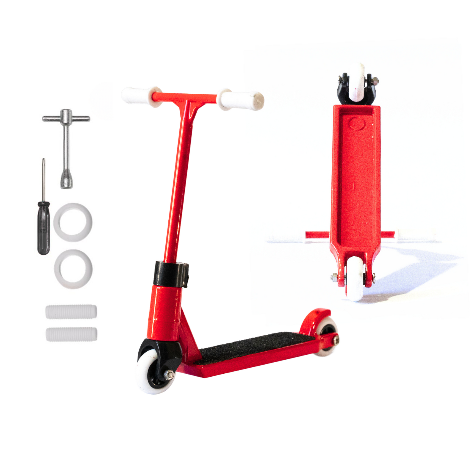 Dial in your tricks with the all-new SV Alloy Finger Scooters — built tough, lightweight, and ready for endless desk-park sessions. Available in 5 colours (Army, Red, Purple, Silver & Blue), each kit includes spare grips, tyres, and two multi-tools so you can keep your setup dialled and customise your ride your way.