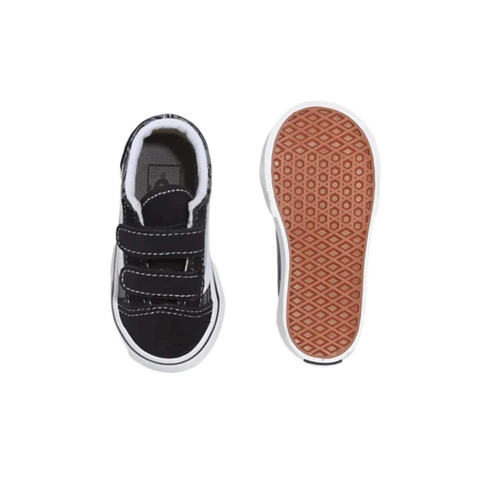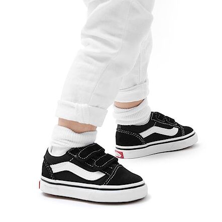 Strap Closures Create a Toddler-Friendly Fit on this Iconic Sidestripe Shoe. The Toddler Old Skool V reimagines our iconic Sidestripe shoe by swapping traditional laces for double hook-and-loop closures. Made with signature suede and canvas uppers, this low-top style maintains its classic appeal while providing an easy, secure fit that keeps your little one comfortable all day.