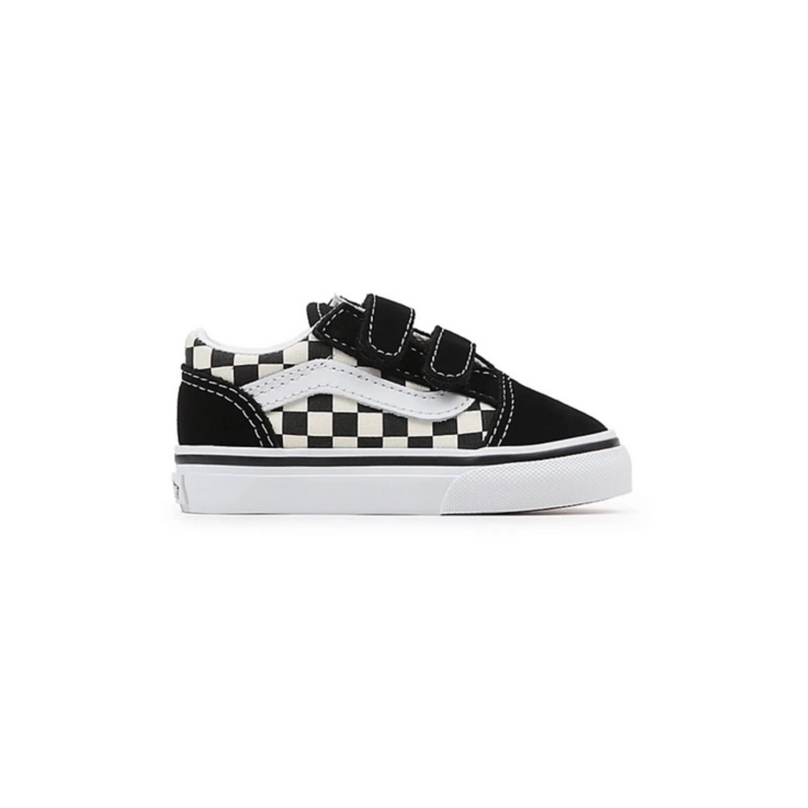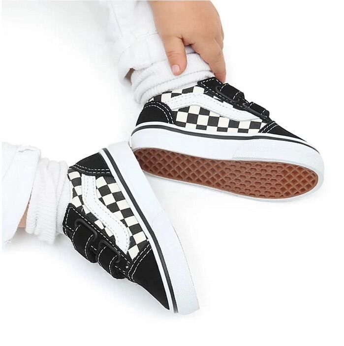 Strap Closures Create a Toddler-Friendly Fit on this Iconic Sidestripe Shoe. The Toddler Old Skool V reimagines our iconic Sidestripe shoe by swapping traditional laces for double hook-and-loop closures. Made with signature suede and canvas uppers, this low-top style maintains its classic appeal while providing an easy, secure fit that keeps your little one comfortable all day.
